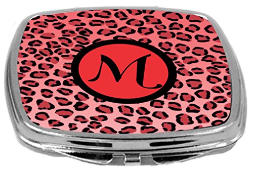 Rikki Knight Compact Mirror, Letter m Initial Red Leopard Print