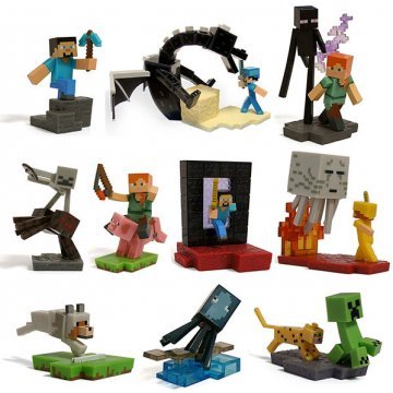 -. Feature : Officially licensed and created by J!NX. / 2.25" cubed. / PVC and ABS plastic. / Collect all 10: Alex & Enderman, Creeper & Ocelot, Enderdragon Fight, Ghast Fight, Nether Portal, Pig Rider, Spider Jockey, Squid, Steve, and Wolf. / Not recommended for children under the age of 3.
