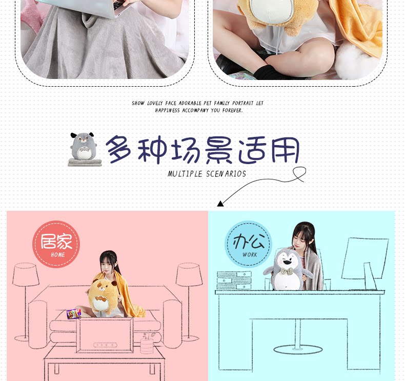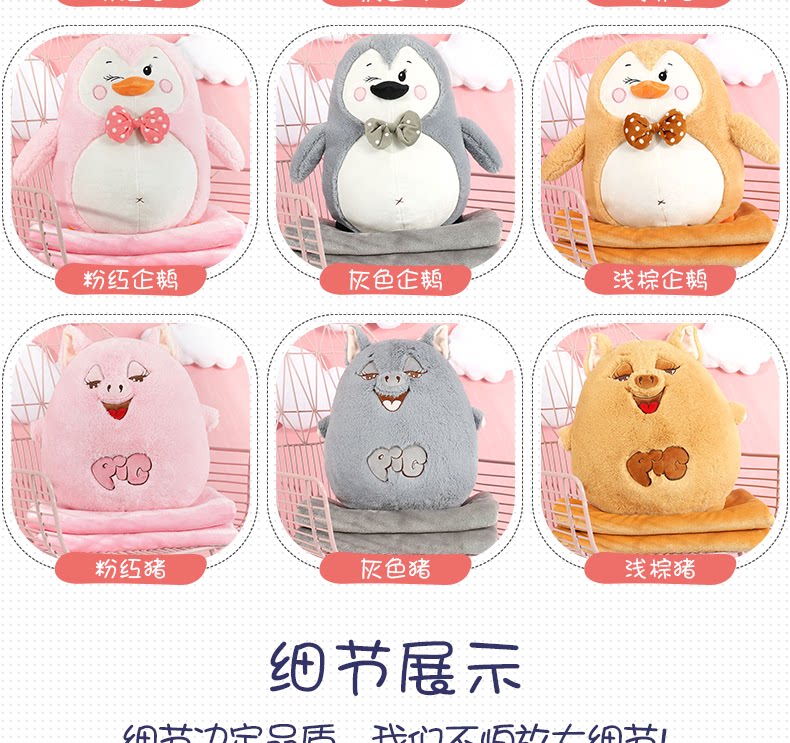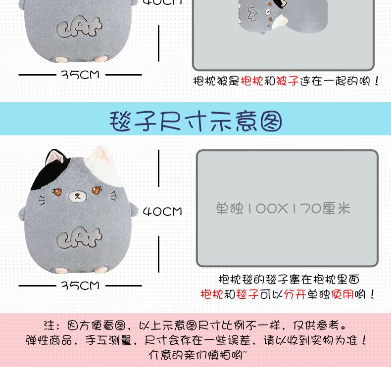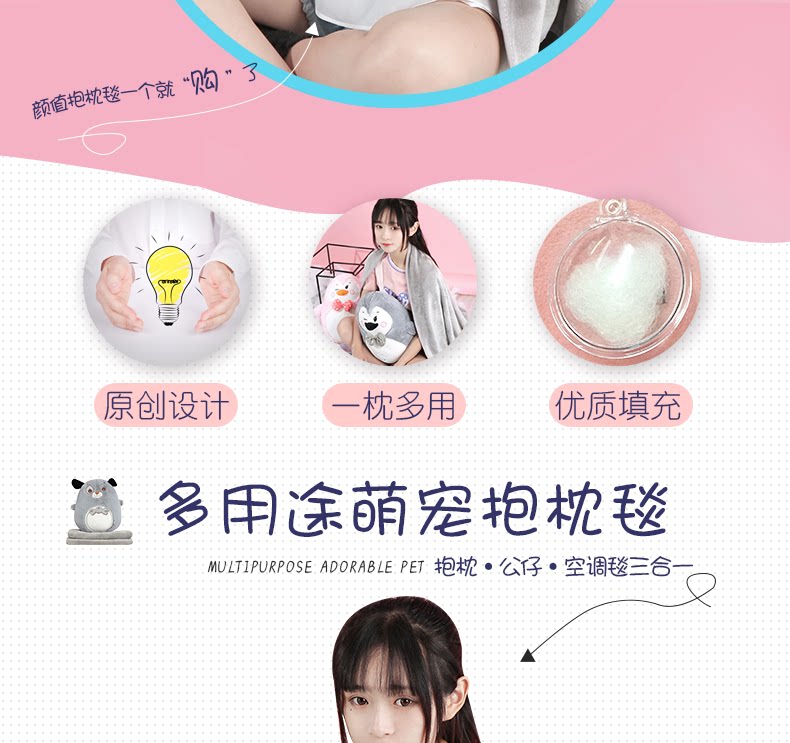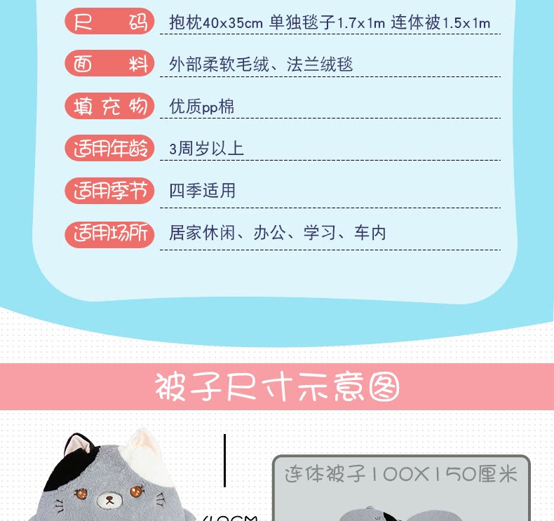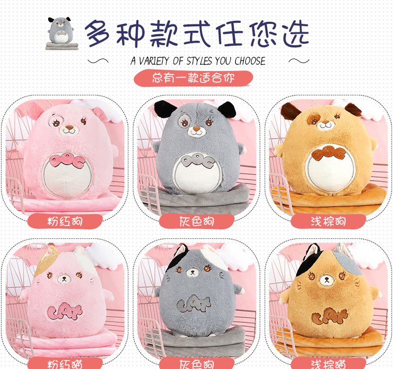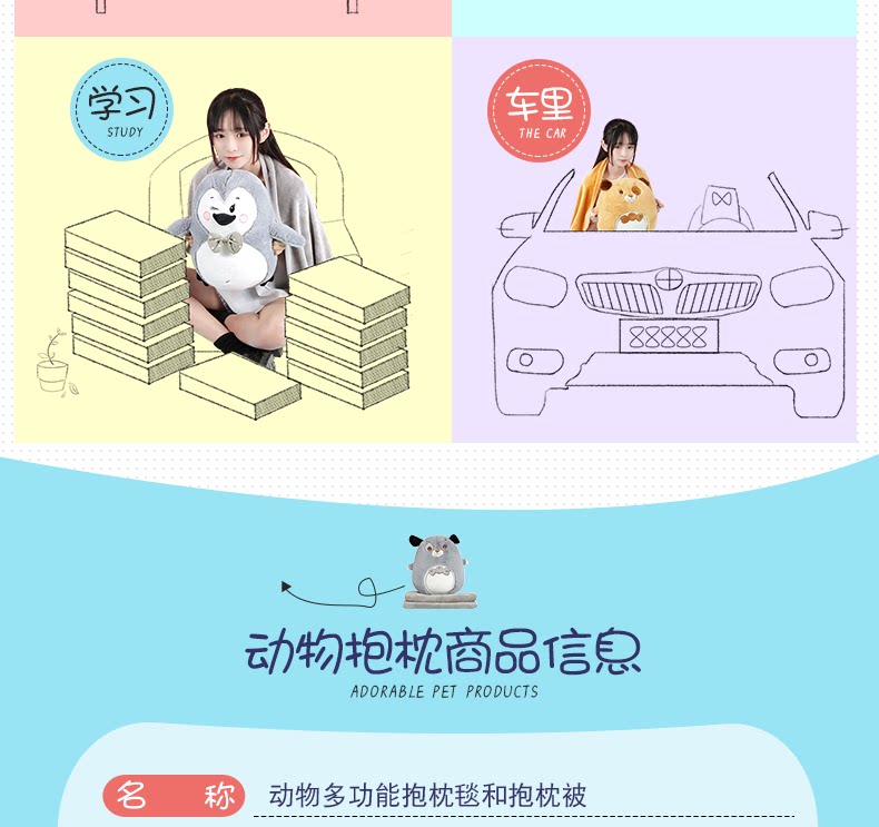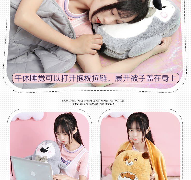 󰄬可爱抱枕被子两用靠垫被沙发办公室折叠午休靠枕头被汽车空调毯
