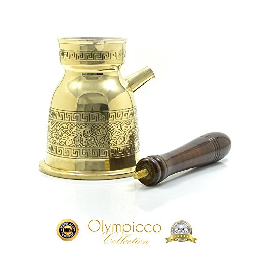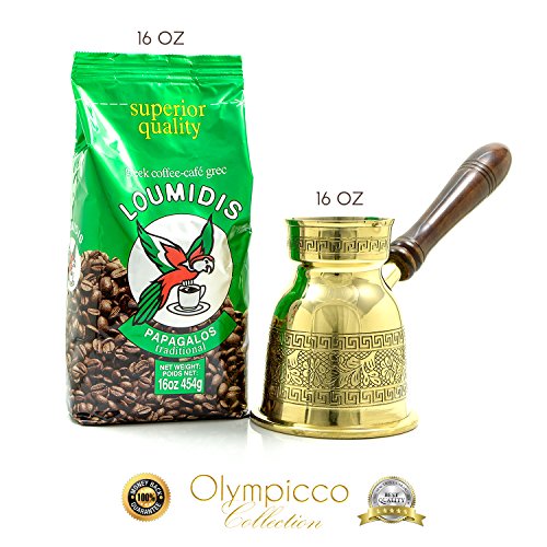 Papagalos Loumidis Ground Coffee 16 Oz - With Handmade Greek Turkish Coffee Pot Solid Brass 3mm - Elegant patterns with coffee flowers and Greek key design with removable Wooden Handle from OLYMPICCO Collection 16. Oz (Pack of 2) There are plenty of coffee pots available these days that come in different styles and designs. But there is one breakthrough product that is now starting to captivate the attention and interest of many coffee lovers and enthusiasts out there. This product is none other than the thickest Greek Turkish Coffee Pot Solid Brass, handmade with elegant flower patterns and Greek key borders design. FIVE Reasons WHY should people BUY The Papagalos Loumidis Ground Coffee 16 Oz and coffee Pot, OLYMPICCO Collection Pack of 2. 1) Every cup of Greek Coffee contains 150mg of antioxidants which operate as a protection shield of your cells, so it is ready to be prepared in Olympicco Collection coffee pot with no further grinding. 2) This top quality Greek/Turkish coffee pot comes with removable wooden handles that also provides ultimate comfort upon every use. 3) Available in one size of 16 Oz. These coffee pots are designed to particularly make the best Greek coffee, and the solid brass material contributes to the coffee's great taste. Brass is also said to be better than copper since this is a tough material and this remain shiny even for longest years. 4) The Greek Turkish Coffee pot can impart a refreshing and great taste to your coffee. This coffee pot has become a favorite possession to so many people especially those who love Greek/Turkish coffee. 5) OLYMPIC TRADING Offers 100% Money-Back and Satisfaction Guarantees. Advantages: If you are looking for the best coffee pot that boils easily and makes the most delicious coffee, then the Greek Turkish Coffee Pot from OLYMPICCO Collection is the best choice. 0 |
