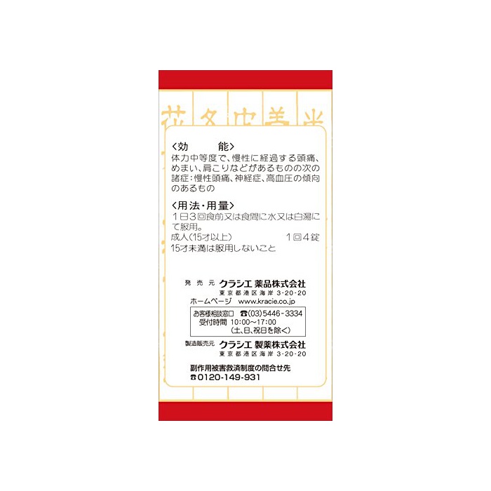 원본상품명: 【第2類??品】クラシエ釣藤散料エキス錠 240錠