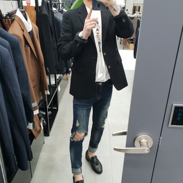 가을부터 정말쉽게 코디할수있는 기본 블랙블레이저 자켓입니다. 밋밋하지않고 조직감이 있기때문에 캐주얼한 코디에도 잘어울리고 원단감역시 상당히좋습니다.착용모델 173/6395착용