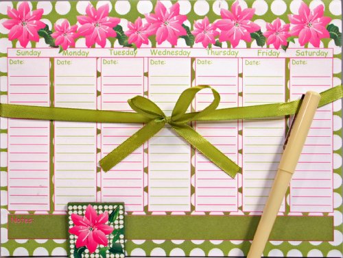 -. Title : Creative Hobbies® Magnetic Memo Weekly Calendar Notepad Set, 52 Sheets with Pen & Decorative Magnet - Flower Design