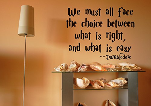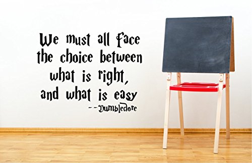 -. Brand : Decor Vinyl Store -. Color : Black or white -. EAN : 0692264109836 -. Feature : Default color for window decals is Black. This product will be delivered in a sturdy shipping tube. / If you prefer white, please email a request to Decor Vinyl Store requesting white. Created from highest quality glossy vinyl available / This wall decal can be easily removed / This wall decoration can be washing gently with mild soap and water / When applied properly, our wall quotes look as if they have been painted on the wall. -. IsAutographed : 0 -. IsMemorabilia : 0 -. Label : Decor Vinyl Store LLC -. Manufacturer : Decor Vinyl Store LLC -. Model : 324a -. MPN : 324bwall -. PackageQuantity : 1 -. PartNumber : 324bwall -. ProductGroup : Home -. ProductTypeName : AUTO_ACCESSORY -. Publisher : Decor Vinyl Store LLC -. Size : 14 X 20 inches -. Studio : Decor Vinyl Store LLC -. Title : We must all face the choice between doing what is right and and what is easy -Wall-decal- 14"wide X 20" High-Black or White, Dumbledore quote, Harry Potter decal -. UPC : 692264109836