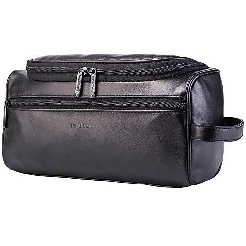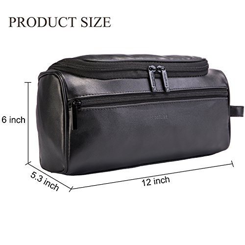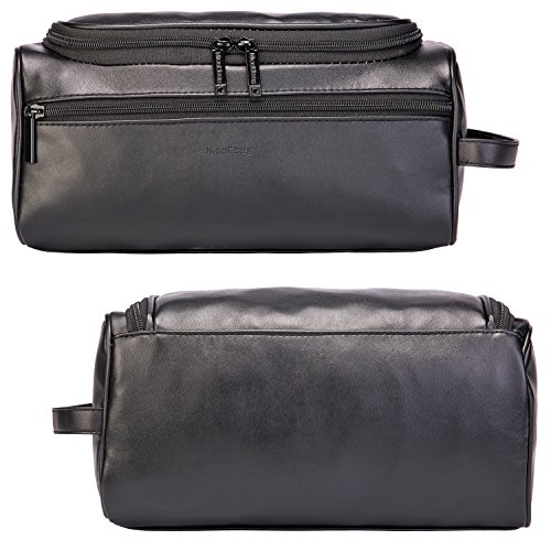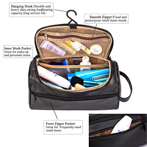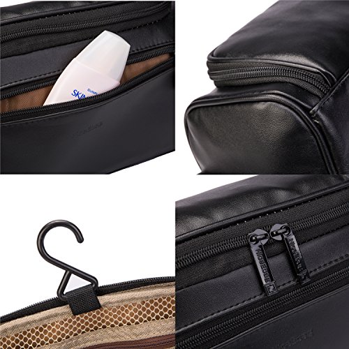 NiceEbag Leather Toiletry Bag Micro Fiber Travel Toiletry Organizer Portable Hanging Makeup Bag Dopp Kit & Shaving Cosmetic Bag for Men Women (Black)