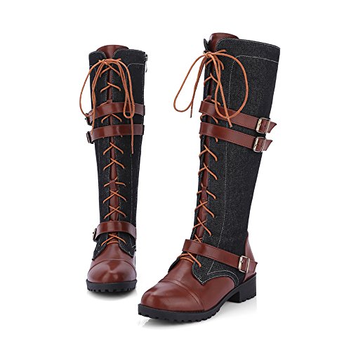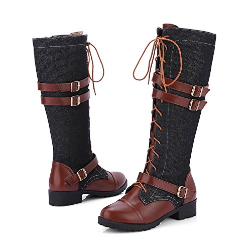 ?Find your perfect pair with understated chic style. Crafted from denim fabric joint with the synthetic leather, this fashion boot is a perfect fit for your inner rock star. A lace-up front lends this boot classic appeal, while a full length side zipper lets you slip this shoe on and off for easy wear from start to finish. ●Shaft measures approximately 14" from arch ●Super Soft Materials for tube and lining