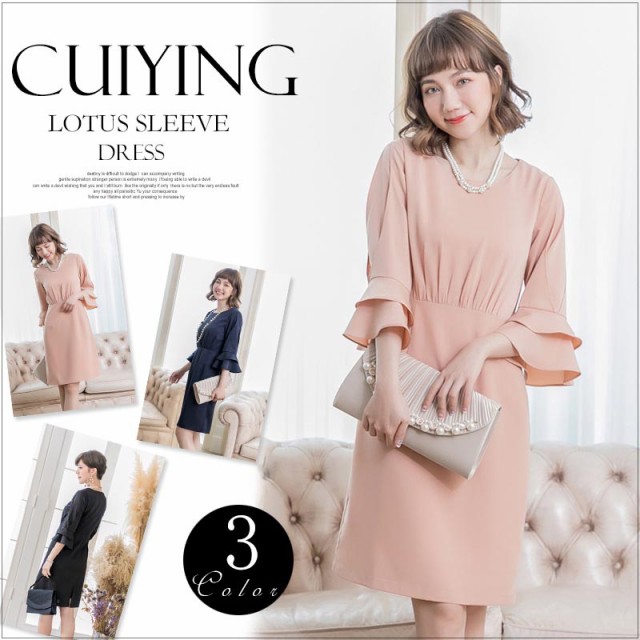 ふんわりと広がるラッフル袖がフェミニンなワンピースドレス。
