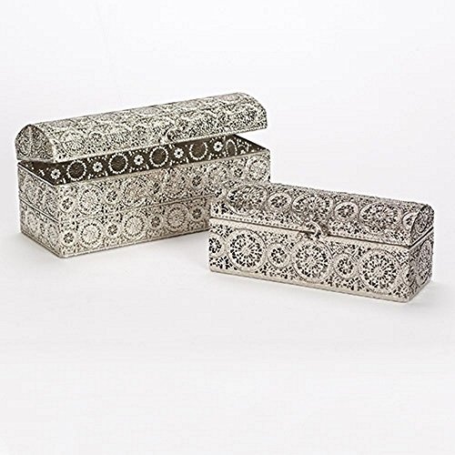 Roman Filigree Metal Set of Two Curved Lids Rectangle Nesting Boxes and Are Boxed