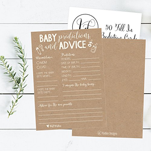 50 Rustic Advice and Prediction Cards for Baby Shower Game, New Mom & Dad Card or Mommy & Daddy To Be, For Girl or Boy Babies, New Parent Message Advice Book, Fun Gender Neutral Shower Party Favors