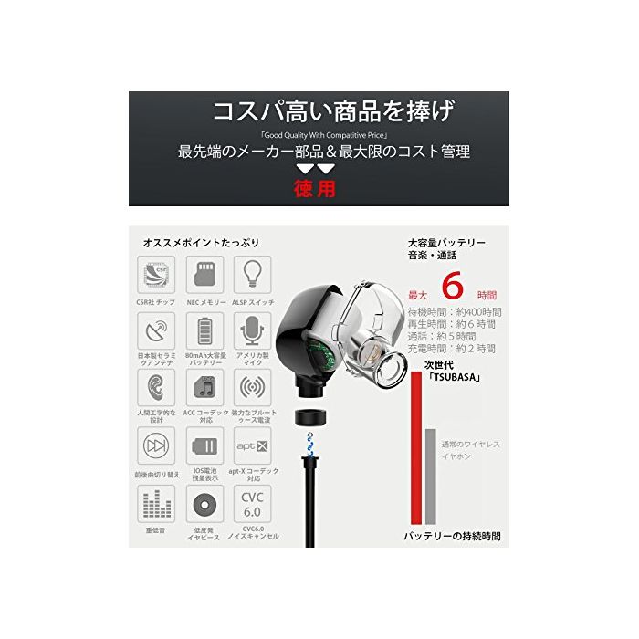 【고음질&고품질인 통화가 가능】C 에스 R사의 CSR8640블루 tooth 팁(칩)에 의해스테레오의 음성 데이터를,ACL채널상으로 고품질로 스트리밍 송신 하는 것 를 할 수 있습니다.동사의 CVC6.0노이즈 캔슬 기술을 채용하고, 통상 스타일,스포츠 스타일의 어느 쪽에서도 고품질인 핸드프리 통화가 가능합니다. .