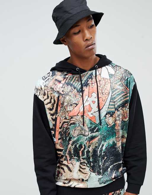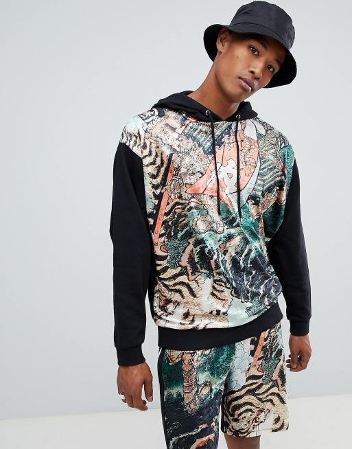 ASOS DESIGN two-piece oversized hoodie with velour tiger print