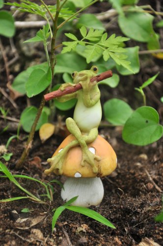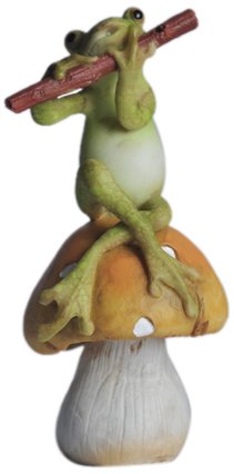 Top Collection Enchanted Story Fairy Garden Frog Playing Flute on Mushroom Outdoor Statue