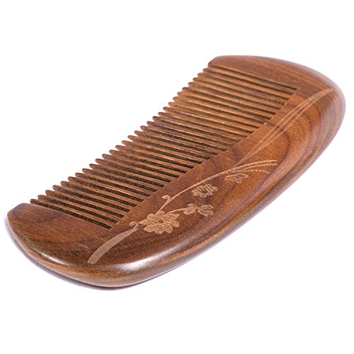 Breezelike Sandalwood Hair Comb with Premium Gift Box - No Static Wooden Pocket Fine Tooth Comb with Plum Blossom Carving