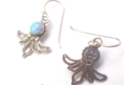 - Feature : Sterling Silver Ethnic Dangle Earrings Designer Jewelry Filigree Handcrafted Set Blue Lab Synthetic Opal / Blue Lab synthetic Opal / Sterling silver earrings