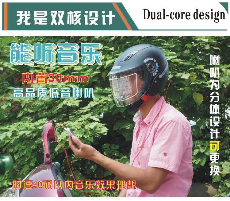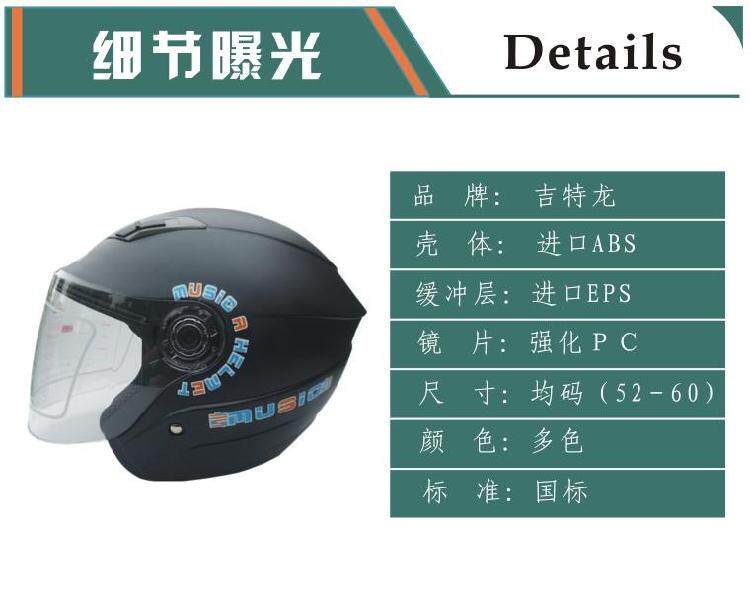 吉特龙摩托车头盔男电动电瓶车头盔女 半盔 防盗音乐头盔