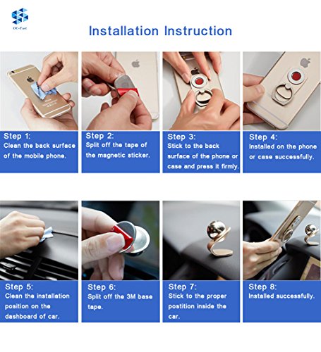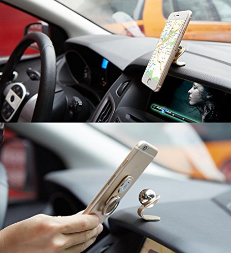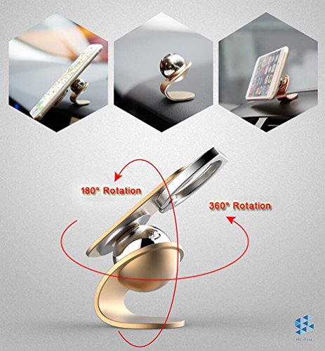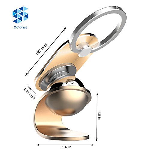 OC-Fast Magnetic Car Cell Phone Mount Holder, 2 in 1 / 360 Rotation / Finger Ring Grip / For All Sizes of Phones (Sizes: M Color: Gold)