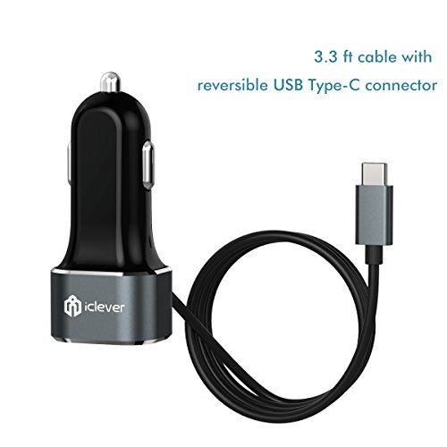 USB C Car Charger, iClever BoostDrive 27W/5.4A Dual Car Charger with Type C Cable and SmartID Port for Apple Macbook 12 Inch, iPhone, HTC 10, LG G5, Nexus 5X/6P, OnePlus 2, Lumia 950/950XL and More