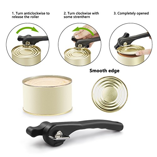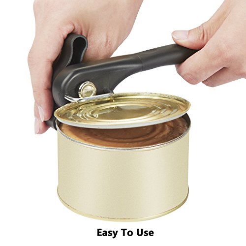 Can Opener,Besiva Prevents Sharp Edges and Cuts - Ergonomic Soft Grips Handle Food Grade Stainless Steel Smooth Edge Can Opener Manual (Black)