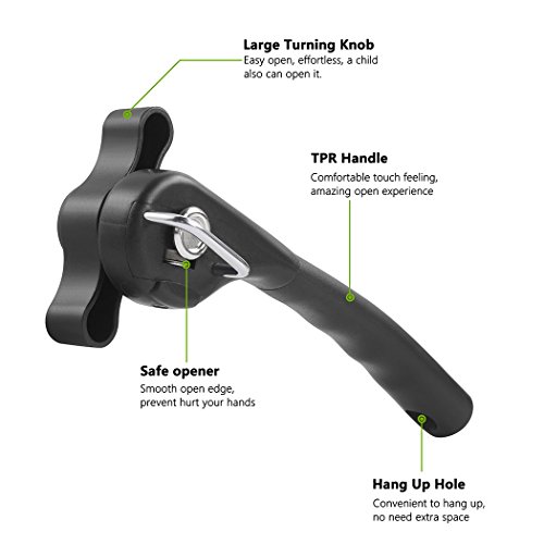 Safety:The easy to turn non-slip turning knob makes it so that anyone can use this can opener. You no longer have to worry about cutting yourself when opening cans with the smooth edge cutting safety mechanism