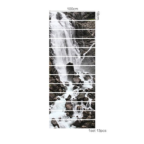 AmazingWall 18x100CM/7.1x39.4" 13PCS/SET Waterfall Stone Stair Sticker 3D Printing Removeable Waterproof Wallpaper Decor Home Decorations