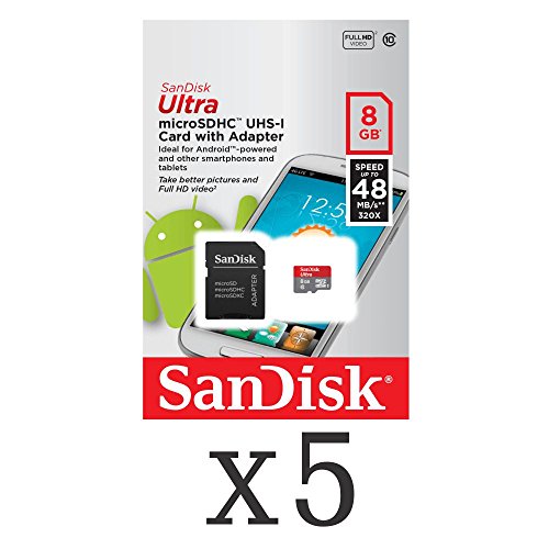SanDisk Ultra 8GB UHI-I/Class 10 Micro SDHC Memory Card Up To 48MB/s With Adapter- SDSDQUAN-008G-G4A (Pack of 5)