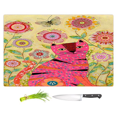 DiaNoche Designs CB-SascaliaPinkCatButterfly2 Sascalia-Pink Cat Butterfly Cutting Boards from, Large 15" x 11"