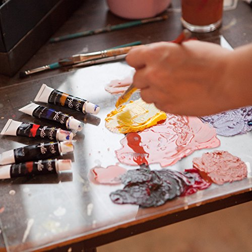 - BEST VALUE PROFESIONAL GRADE Complete Acrylic Paint Set with 12 Vibrant Color: Titanium White, Lemon Yellow, Yellow Ochre, Vermilion, Crimson Red, Viridian, Hooker's Green, Cobalt Blue, Ultramarine Blue, Burnt Sienna, Raw Umber and Lamp Black. Each tube is filled with 12 mL (0.4 oz) of high quality rich pigments coloring paints.
