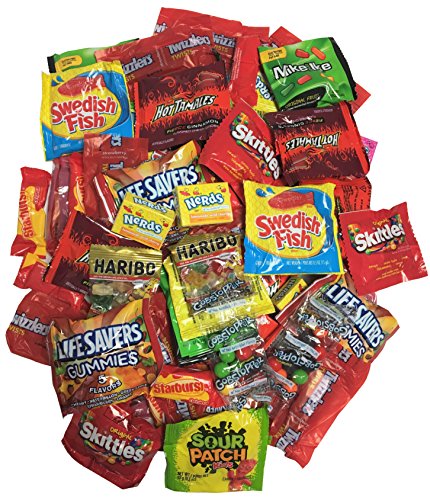 -. Feature : Bundle includes 32 ounces of Skittles, Swedish, Nerds, Life savers, Starburst, Sour Patch, Twizzlers, Haribo, Mike & Ike, Hot tamales, Gobstopper. Packaging, inequality or numbers of products can be slightly different from the photo / Individually wrapped LOOSE CANDY IN BAG OR BOX. This is not a manufacturer created bundle. Every item is individually wrapped in individual manufacturer's packaging. Each mix will vary slighty as compared to photo. / Great for kids for Valentines gifts or grown ups, this is the perfect bridal shower candy buffet and is complementary to a tea party. / Care pack for college student candy lover, military, camp, back to school, road trips and gift basket stuffers for Halloween, Easter, Mother's day, Christmas, or a wedding party snack table / The candy care package includes individually wrapped candies