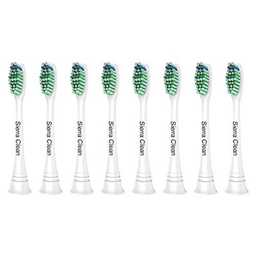 Sierra Clean Standard Replacement Toothbrush Heads for Philips Sonicare, 8 pack, fits Sonicare 2 Series Plaque Control, 3 Series Gum Health, DiamondClean, FlexCare Series, HealthyWhite and EasyClean