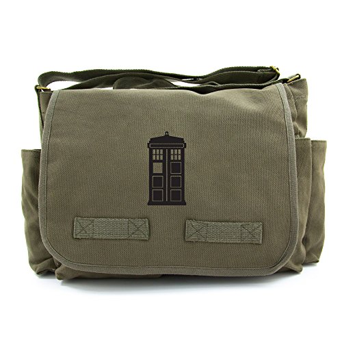-. Brand : Army Force Gear -. Color : Olive & Black -. Department : unisex-adult -. EAN : 0014567427750 -. Feature : 2 inch Wide Adjustable Shoulder Strap, Comfortable to Carry, Brass hardware / Four Outside Pockets - Great for water bottles, car keys, and wallets / Inside Zipper Pouch, Stonewashed 100% cotton canvas / Enormous Main Compartment, will hold a 15.6 inch laptop / Bag Dimensions: 15" x 11" x 6" -. Label : Army Force Gear -. Manufacturer : Army Force Gear -. Model : AFMG-OL9148-BK263 -. MPN : AFMG-OL9148-BK263 -. PackageQuantity : 1 -. PartNumber : AFMG-OL9148-BK263 -. ProductGroup : Apparel -. ProductTypeName : LAGE -. Publisher : Army Force Gear -. Size : One Size -. Studio : Army Force Gear -. Title : Doctor Who Tardis Army Heavyweight Canvas Messenger Shoulder Bag in Olive & Black -. UPC : 014567427750