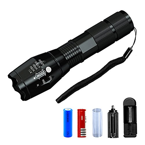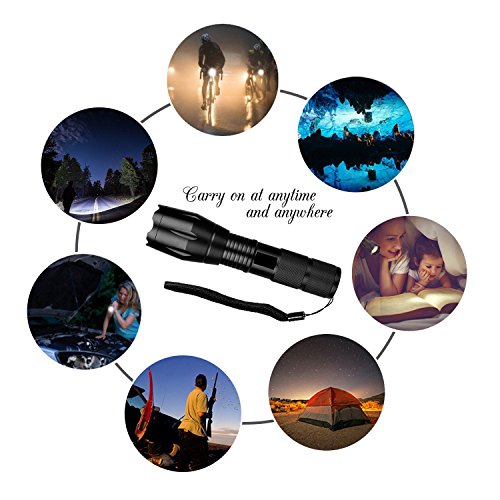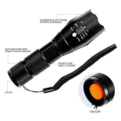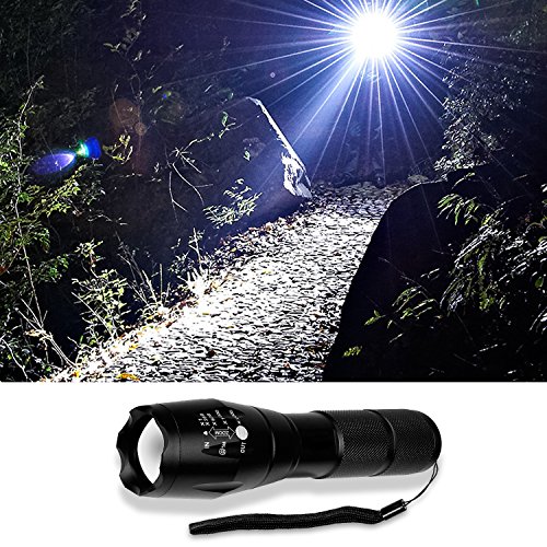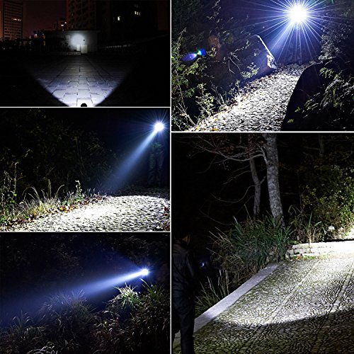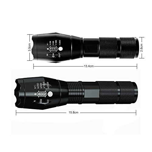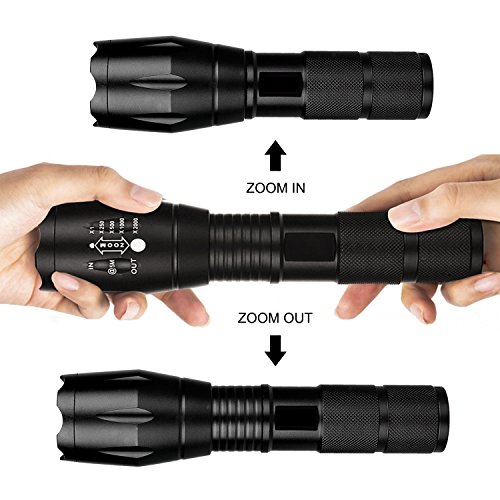 - 【Effective at Long Distance】 1000 Lumens flashlight Cree T6 LED zoomable super bright flashlight, pushing and pulling on the lamp housing it can extend from a great beam to a large area.