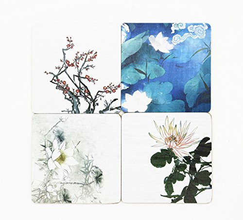 CLSstar floral wood coaster,flower pattern Coffee coaster,beautiful,4pcs/set