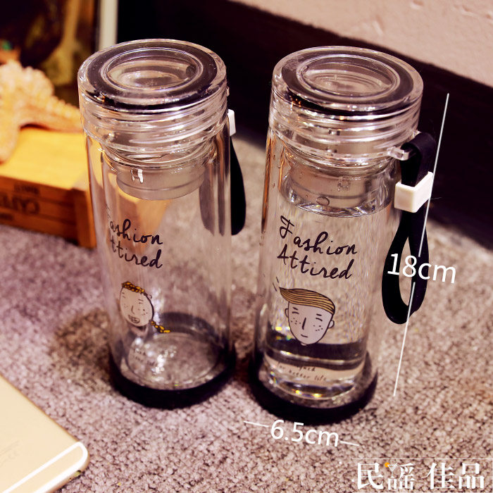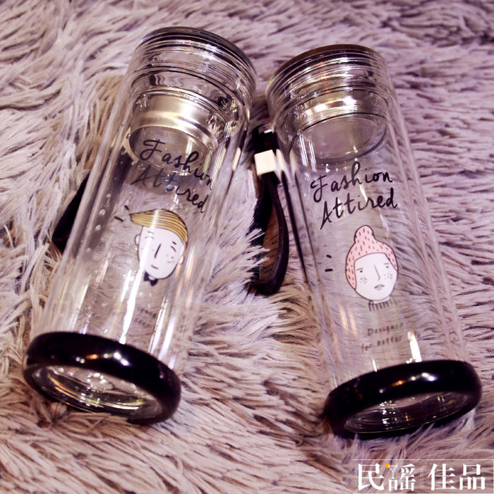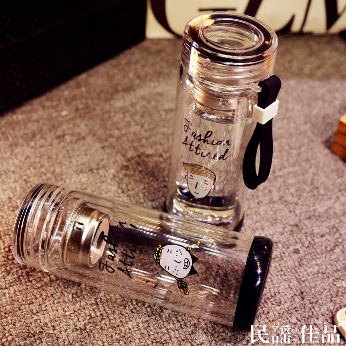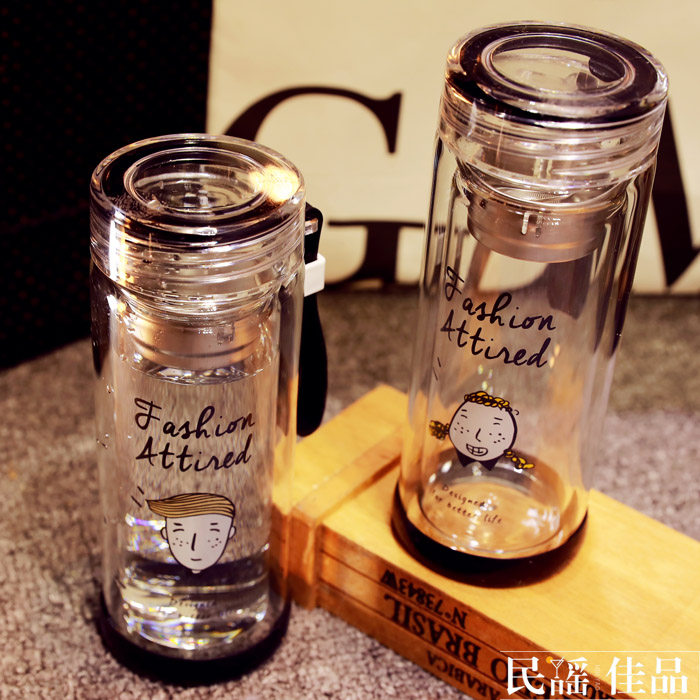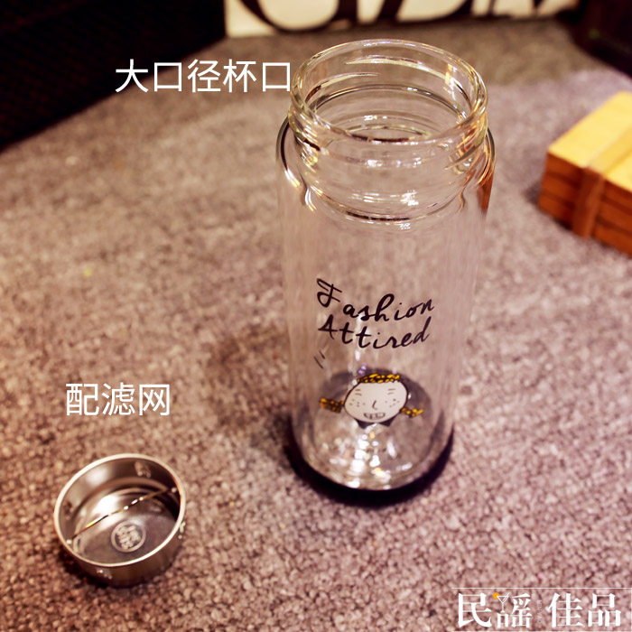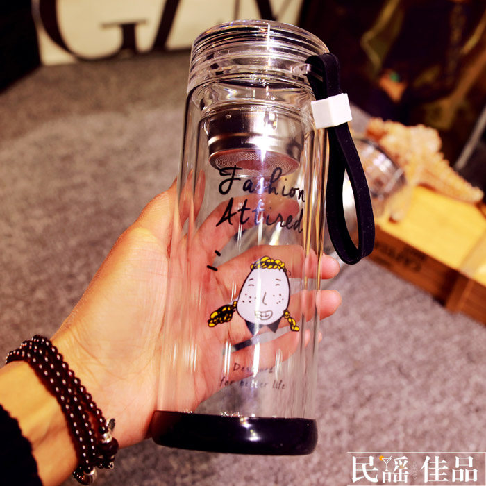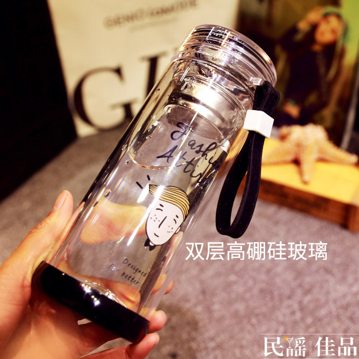 韩国创意双层玻璃杯潮流卡通时尚过滤耐热水杯男女学生泡茶随手杯