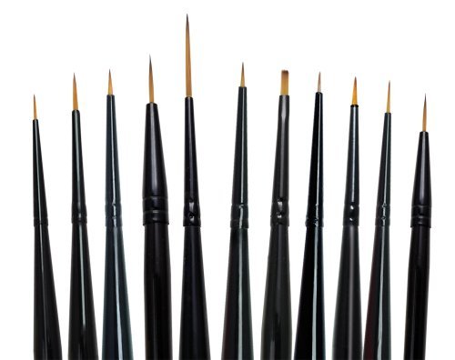 Includes one set of 11 detail and short liner brushes in sizes 5/0, 10/0, 0, 20/0 and 3/0