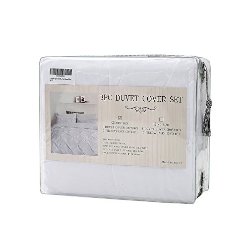 Binding : Kitchen Product Description The pinch pleat duvet cover set includes 1 duvet cover and 2 pillow shams, without duvet. Grey, white,Dark grey colors as well as king, queen sizes are available. The duvet cover set has zippers instead of time consuming buttons, which is more convenient for us to get the duvet in and out when we need to change another one. The corner ties of cover keep the duvets fixed in place, ensuring greater comfort at night. With breathable brushed high density yarn microfiber, the duvet cover set don't fade, shrink after washing, better for decoration your bedroom.