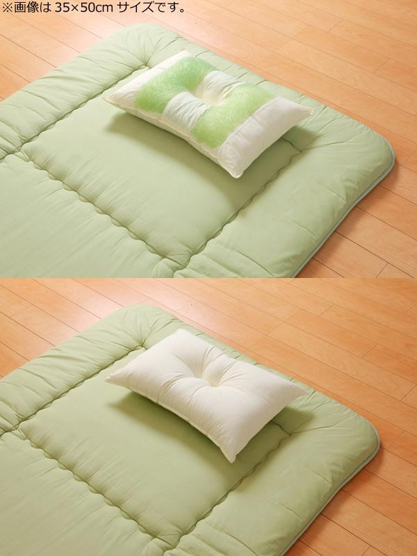 | ヒバエッセンス練り込みパイプを使用した枕です。パイプ使用のため、通気性がよく、熱がこもらず心地よくご使用できます。リバーシブルタイプでひばパイプ側、ポリエステルわた側の2種類の触感を楽しめます。(中材の出し入れはできません) |