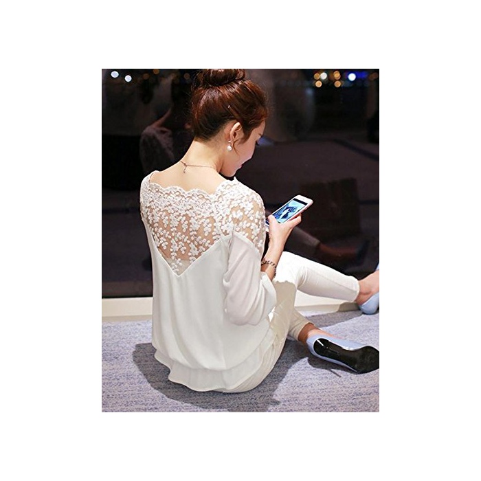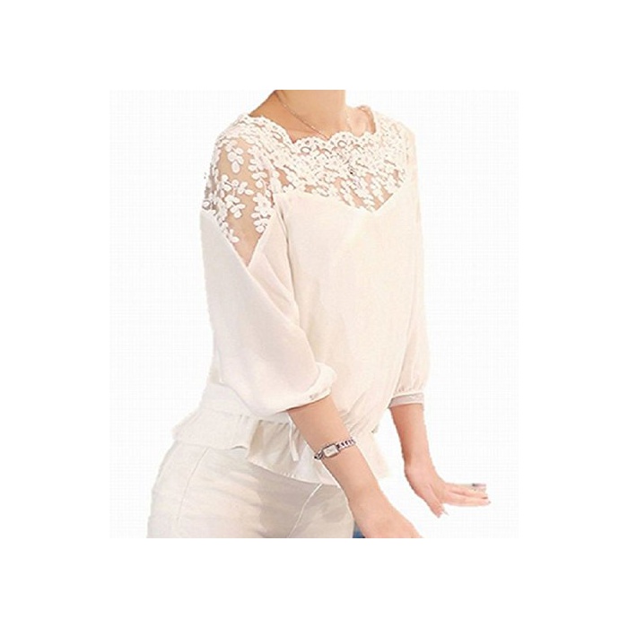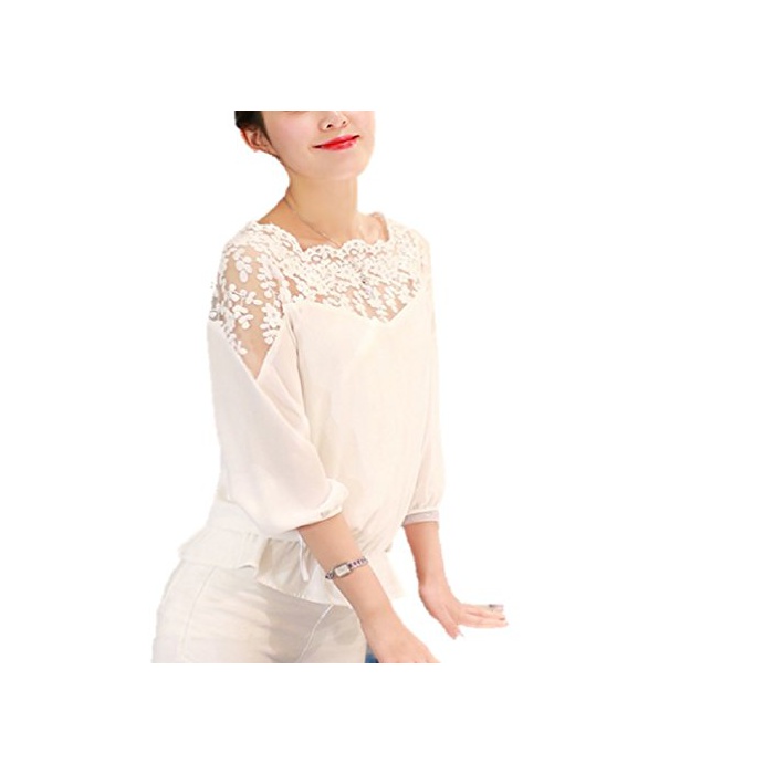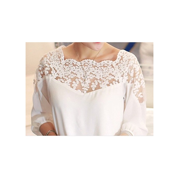 Petit etc Francais 시폰 블라우스 셔츠 레이스 변환 톱스 엘레강트화이트