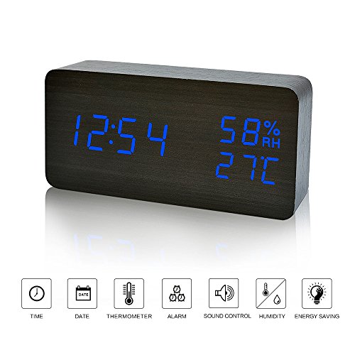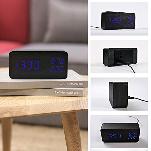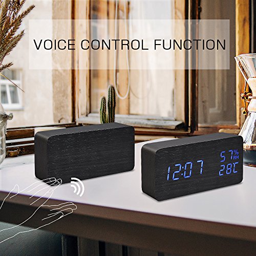 (FiBiSonic)/Nursery/Nursery Decor/DIRECT FROM USA/Desk Clock---FiBiSonic BlackBlue Digital Alarm Voice/Touch Control Desk Silent Modern Style Al...