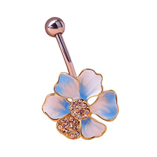 1 * Lotus Shaped Rhinstone Decorated Women Navel Belly Ring Body Piercing Stud (Blue)