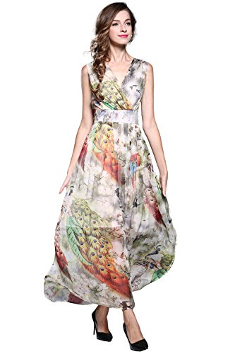 XS:===Length:139.0cm/52.9", ===Shoulder:37.0cm/14.1", ===Bust:84.0cm/31.9", ===Waist:65.0cm/24.7"S:===Length:140.5cm/53.4", ===Shoulder:38.2cm/14.5", ===Bust:89.0cm/33.8", ===Waist:71.0cm/27.0"M:===Length:142.0cm/54.0", ===Shoulder:39.5cm/15.0", ===Bust:94.0cm/35.7", ===Waist:77.0cm/29.3"L:===Length:143.5cm/54.6", ===Shoulder:41.0cm/15.6", ===Bust:102.0cm/38.8", ===Waist:83.0cm/31.6"XL:===Length:145.0cm/55.1", ===Shoulder:42.5cm/16.2", ===Bust:110.0cm/41.8", ===Waist:90.0cm/34.2" This maxi chiffon dress features surplice V-neck, sleeveless design and concealed zipper closure. Banded detail defines your waist and make you look slimmer. It is lined. Allover flower gives this style a chic and stylish look. Soft pleats flows gracefully to create a supremely flattering silhouette.Feature