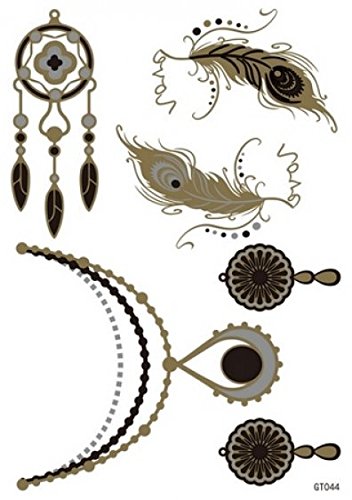 GGSELL GGSELL Metallic Temporary Tattoos Golden Gold & Silver & Black Jewelry design with feathers fashion fake tattoo stickers