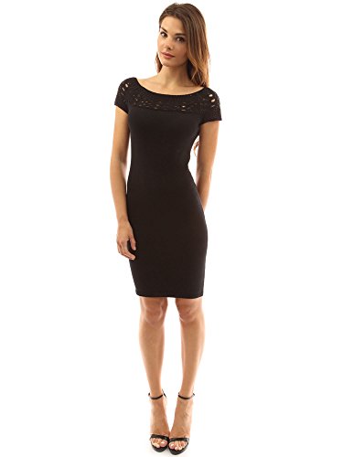 PattyBoutik Women's Boat Neck Crochet Inset Knit Dress