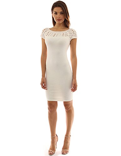 Product DescriptionPattyBoutik Cotton Blend Boat Neck Crochet Inset Raglan Short Sleeve Knit Dress. Model in pictures is 5 feet 8 inches (173cm) tall wearing size S.0