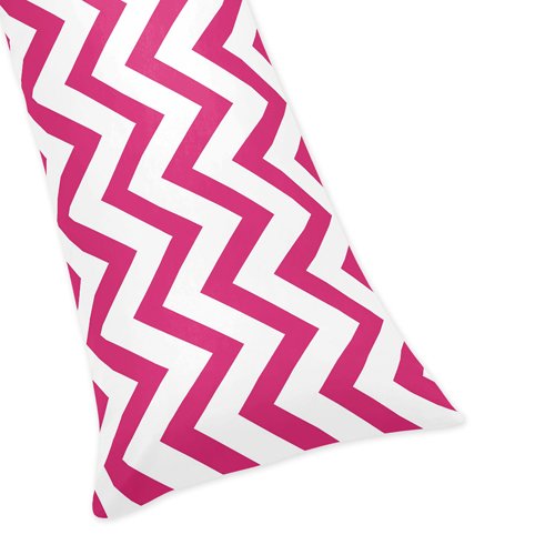 Hot Pink and White Chevron Zig Zag Full Length Double Zippered Body Pillow Case Cover