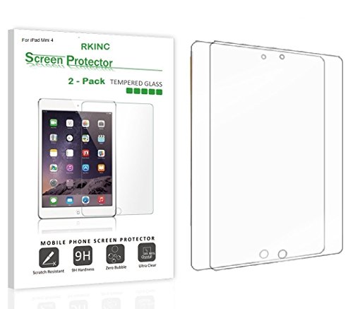 [2-Pack] iPad Mini 4 Screen Protector Glass, RKINC Tempered Glass Screen Protector for Apple iPad Mini 4 0.33mm 2.5D Rounded Edge (2-Pack)