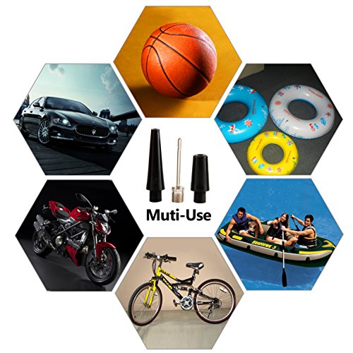 - Muti-Functional: Our tire pump comes with 3 different Nozzles, which makes it perfect for Car, Truck, Vehicle, Bicycle, Inflatable Rafts, Air Mats, and Sport Balls. Lightweight and portable size, keep your car equipped right now in case of emergencies
