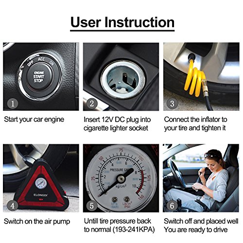 - Ensure Safety on Road Trip: Elongdi air compressor pump automobile tires up to 150 PSI. Inflates a standard mid-sized car tire in 6 minutes. It will keep your tires filled and running smoothly. Prepare in advance so that you could deal with emergency situations just as easy as it should be