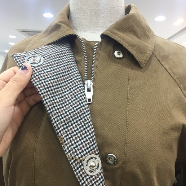소매 체크 배색으로 러블리함과 벨티드형으로 라인을 살려 여성스러움을 함께 부각 시킬 수 있는 바바리 코트입니다.