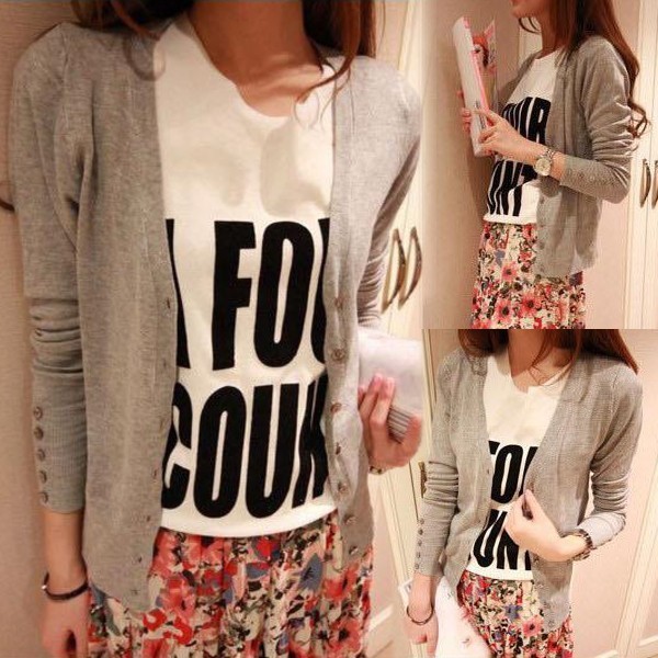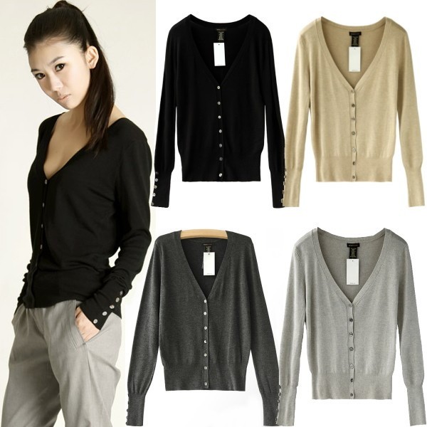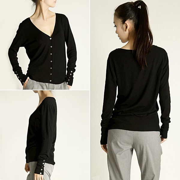 | 商品名 | 長袖 Vネック 袖口ボタン付き シンプル ニットカーディガン |