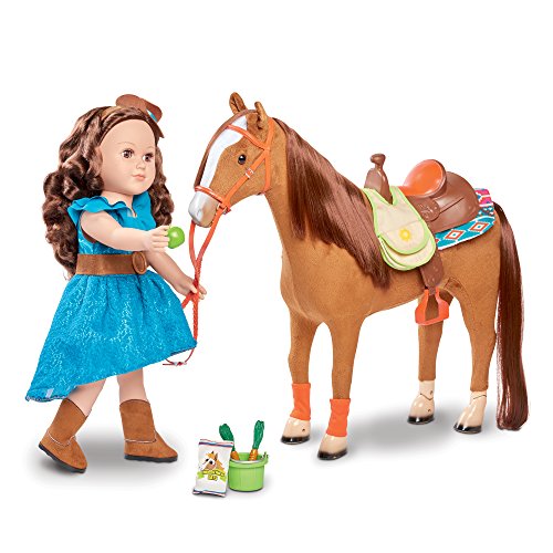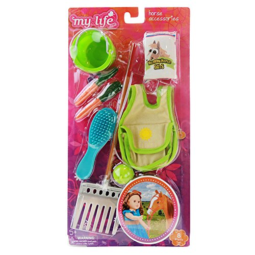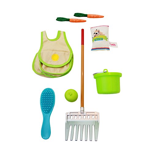 -. Feature : Accessories are sized for an 18 inch horse and doll. / Saddle bags each have pockets. / Set includes: saddlebags, 2 carrots, oats bag, rake, bucket, apple and brush.